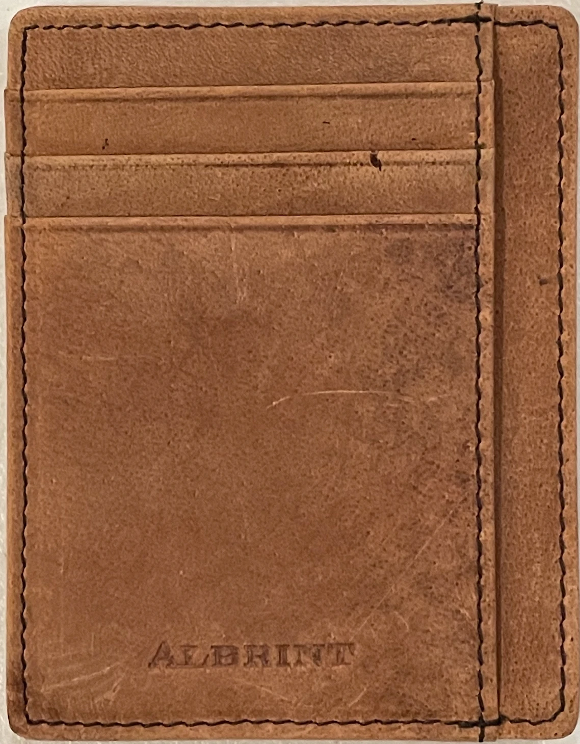 Albrint PF05 Light Brown Crazy Horse Leather Front Pocket Wallet