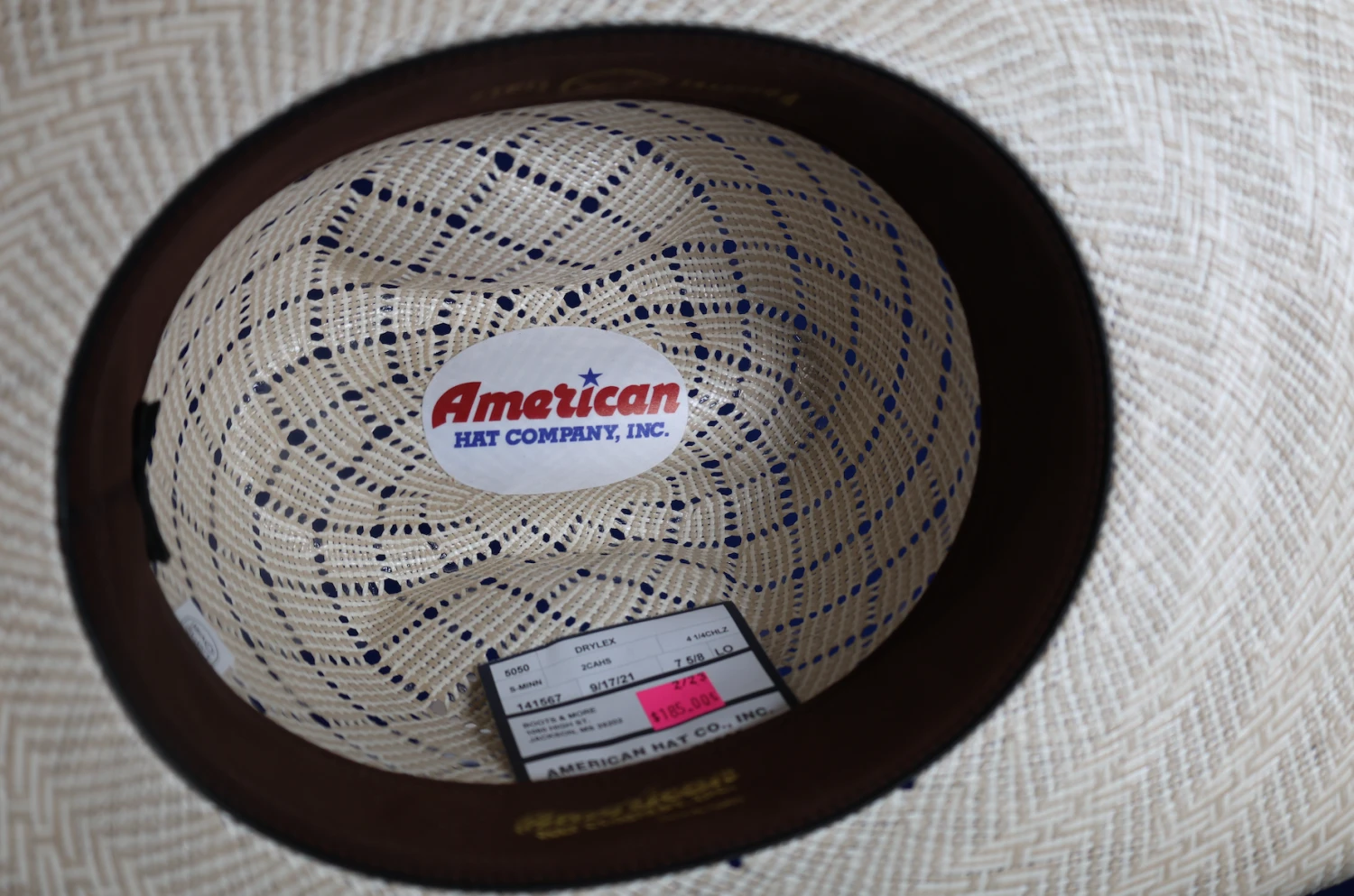 American 5050 Minnick Crown 4 1/4″ Cool Hand Luke Brim Drilex Sweatband Straw Hat