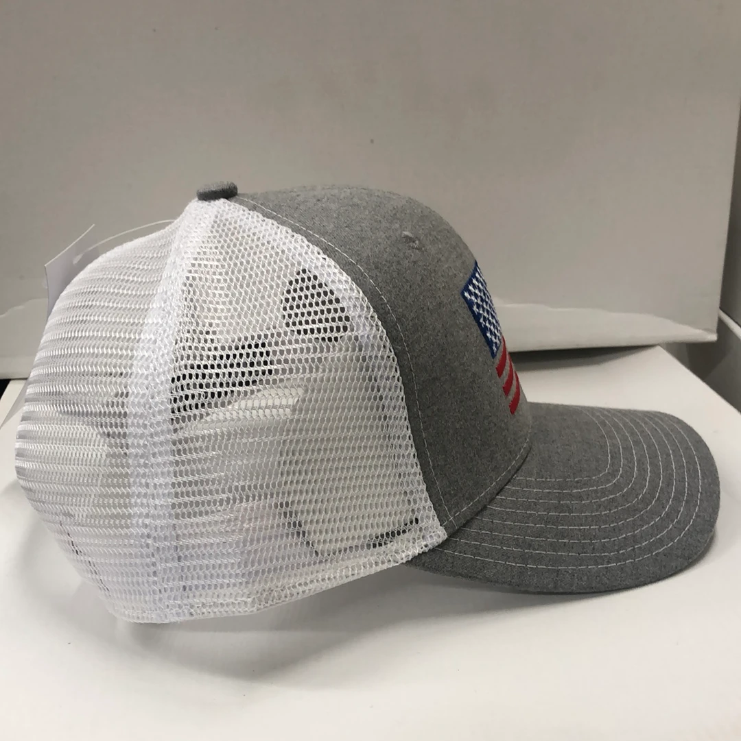 American Flag Embroidered HW-AF-HWH Heather Grey/White Snap Back Trucker Cap