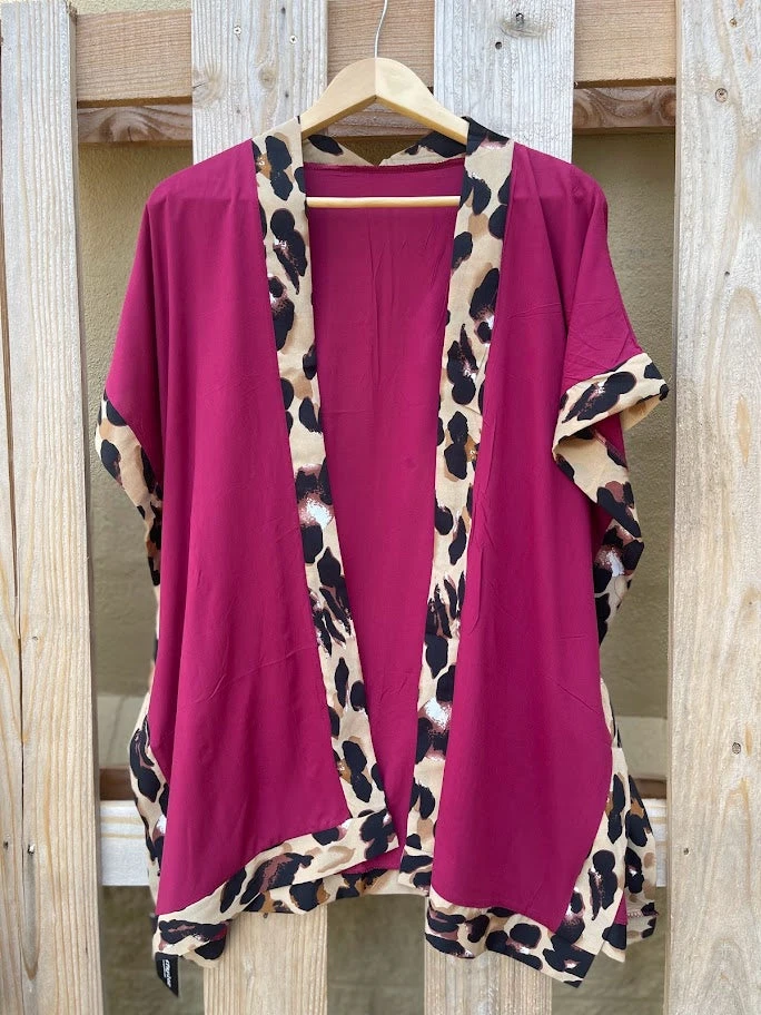 Burgundy Kimono With Leopard Trim 5027713-BURGUNDY