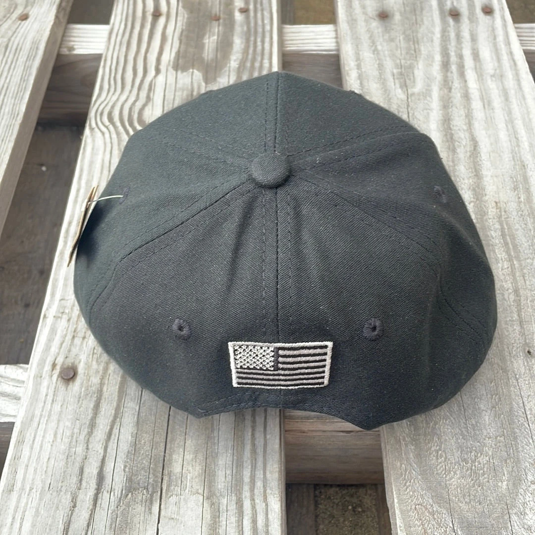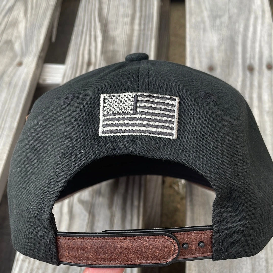 Cambridge American Flag Leather Patch/Leather Bill Black Snap Back Cap