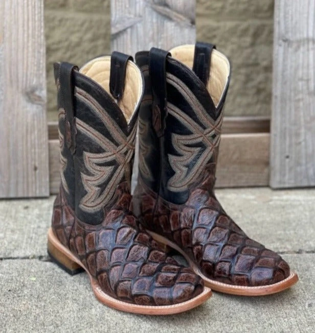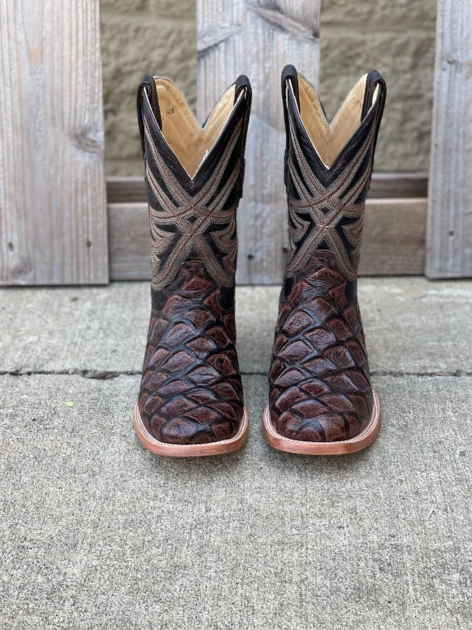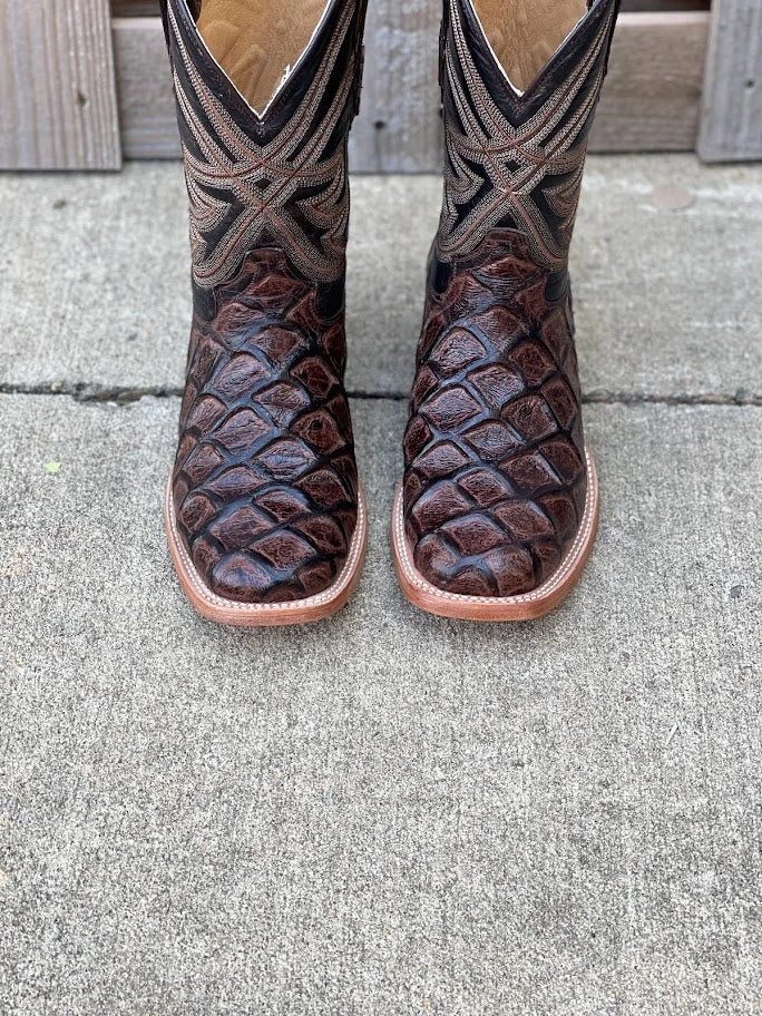 Cowtown Q158 11″ Dark Brown Big Bass Print Square Toe Boot