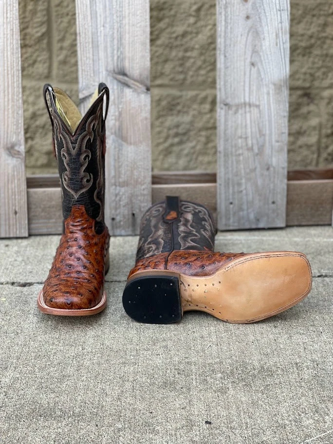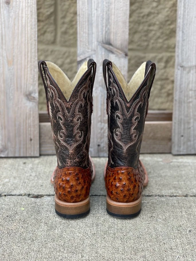 Cowtown Q6064 13″ Cognac Full Quill Ostrich Print Square Toe Boot