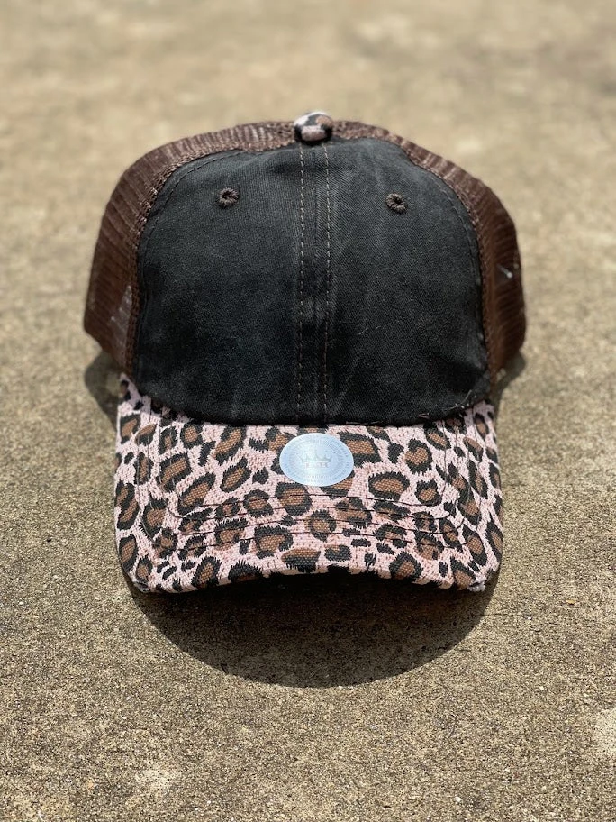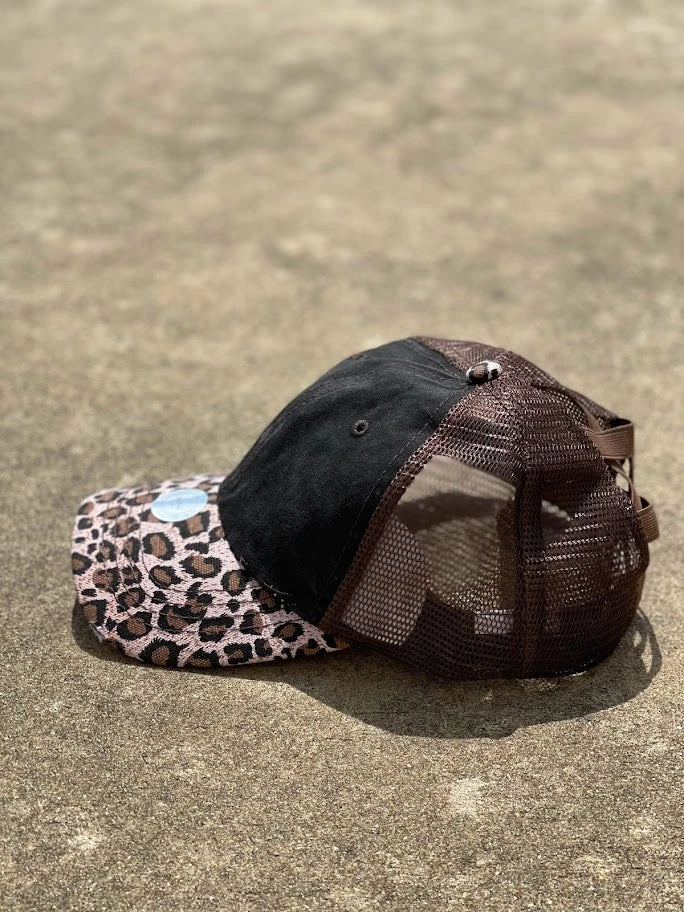 Crisscross Ponytail Brown Leopard Bill 021 Cap