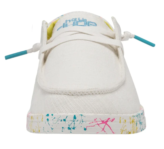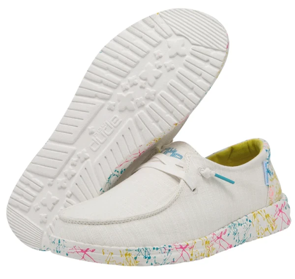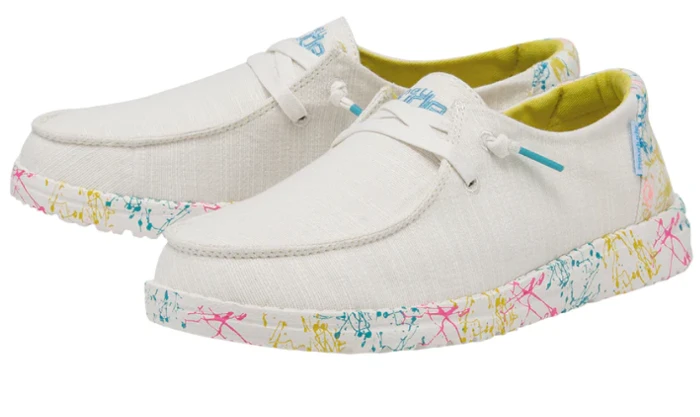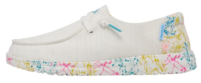 The Wendy collection introduces our iconic low-top moc. A soft, breathable cotton canvas, splattered with unique designs that are sure to stand out and lined in the same prints for extra style points when you kick them off.  Featuring an easy-on system with elastic laces and an ultralight outsole for all-day comfort.Â