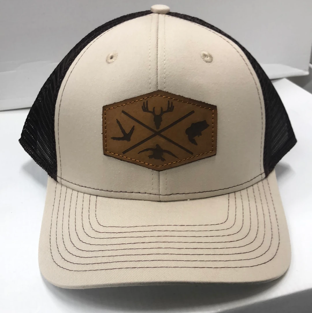 Hunters Logo Leather Patch HW-LOS-TBR Tan/Brown Snap Back Trucker Cap