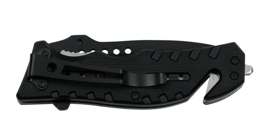 - INCLUDES POCKET CLIP, SEAT BELT CUTTER AND GLASS BREAKER