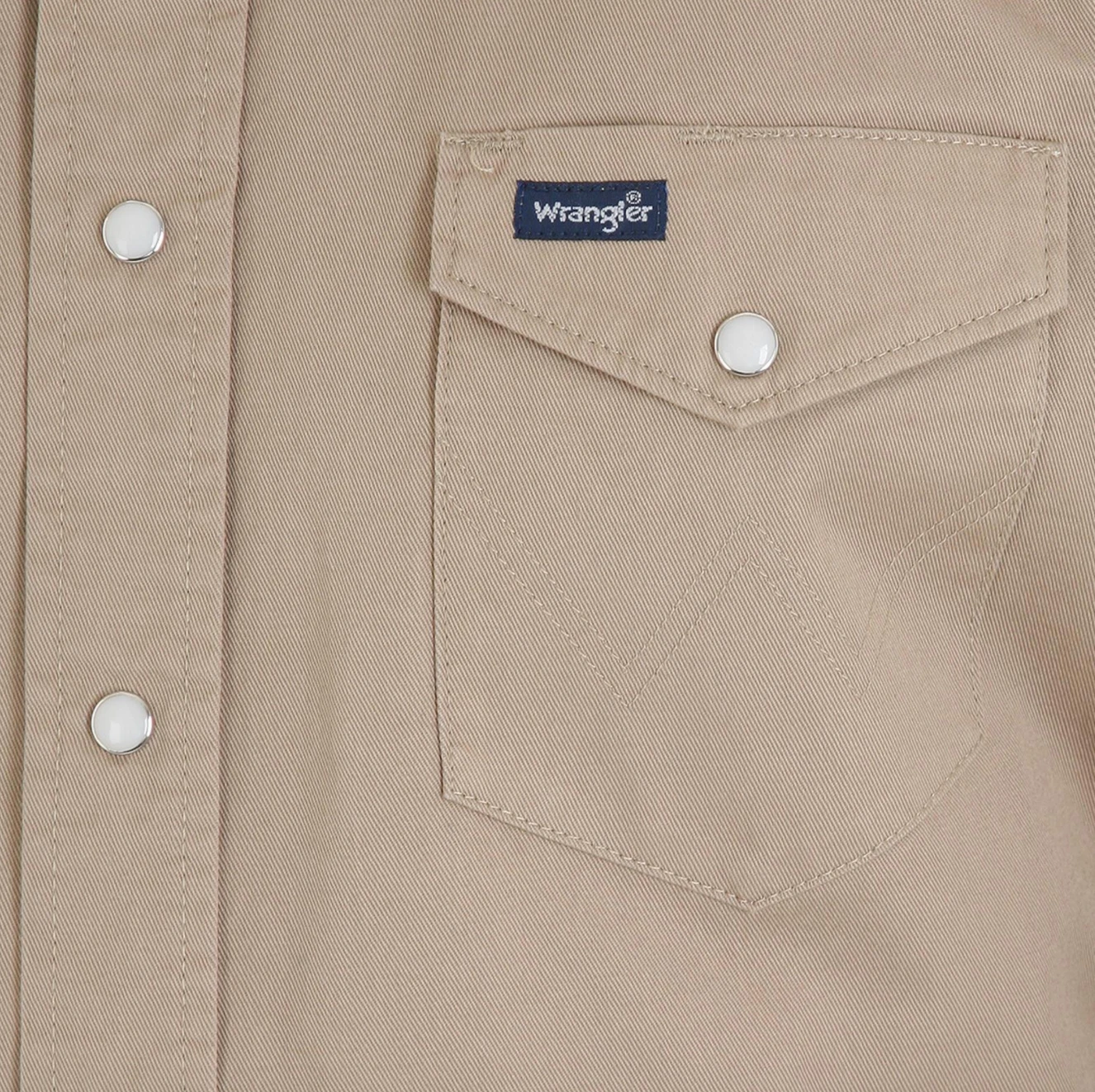 Men’s Wrangler 10MS70319 Khaki Cowboy Cut® Firm Finish Long Sleeve Western Snap Solid Work Shirt