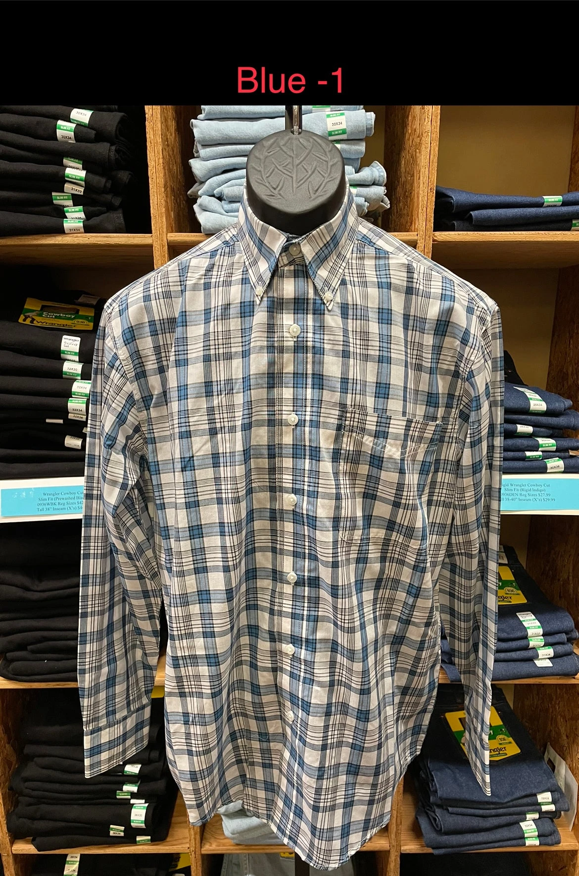 Long Sleeves, Buttondown Collar, Straight Back Yoke with Box Pleat, One Round Bottom Pocket, Two Button Adjustable Cuffs.
