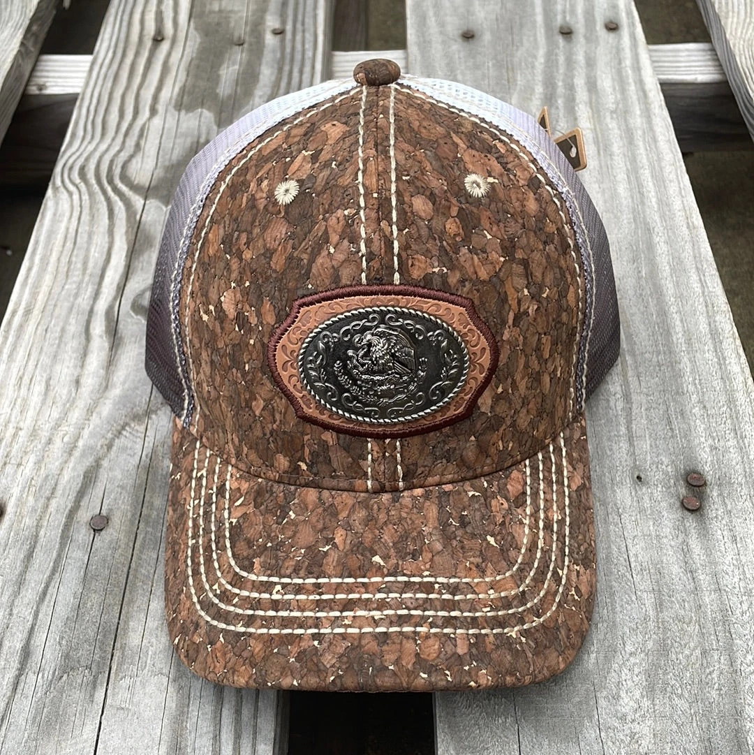 Mexican Flag Metal Concho Brown Cork Snap Back Trucker Cap