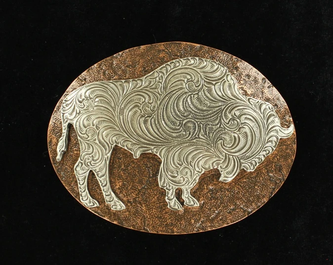NOCONA 37712 OVAL COPPER BELT BUCKLE WITH SILVER BUFFALO