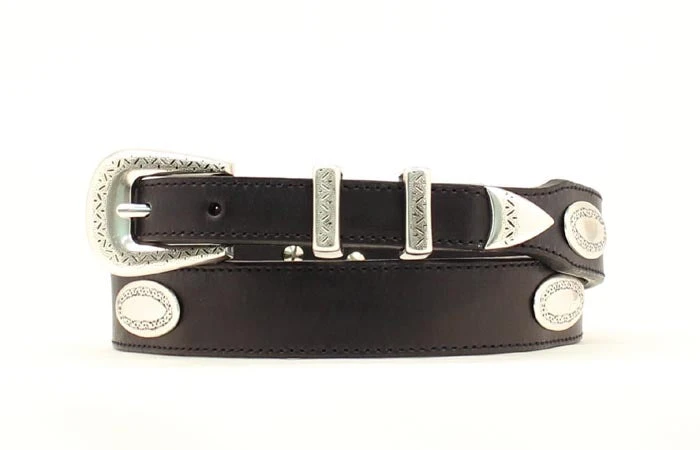 Enjoy comfort and durability from this Mens Nocona belt by M&F Western Products®. The belt features a black strap with oval silver conchos, Removable etched silver buckle should you want to create your own look. This is a great addition to any wardrobe.