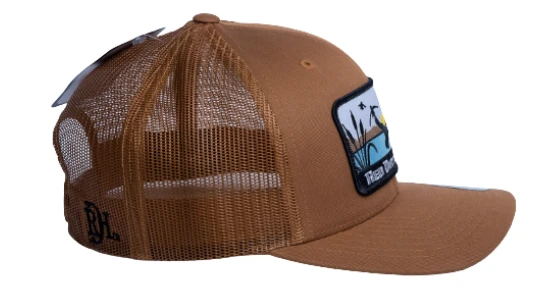 Caramel colored snapback cap featuring the RDHC Original “Ducks” patch.