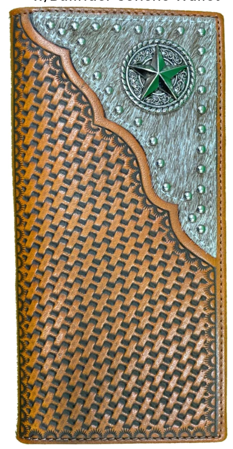 Brown Hairon/Basketweave w/Star Concho Wallet HK506BR