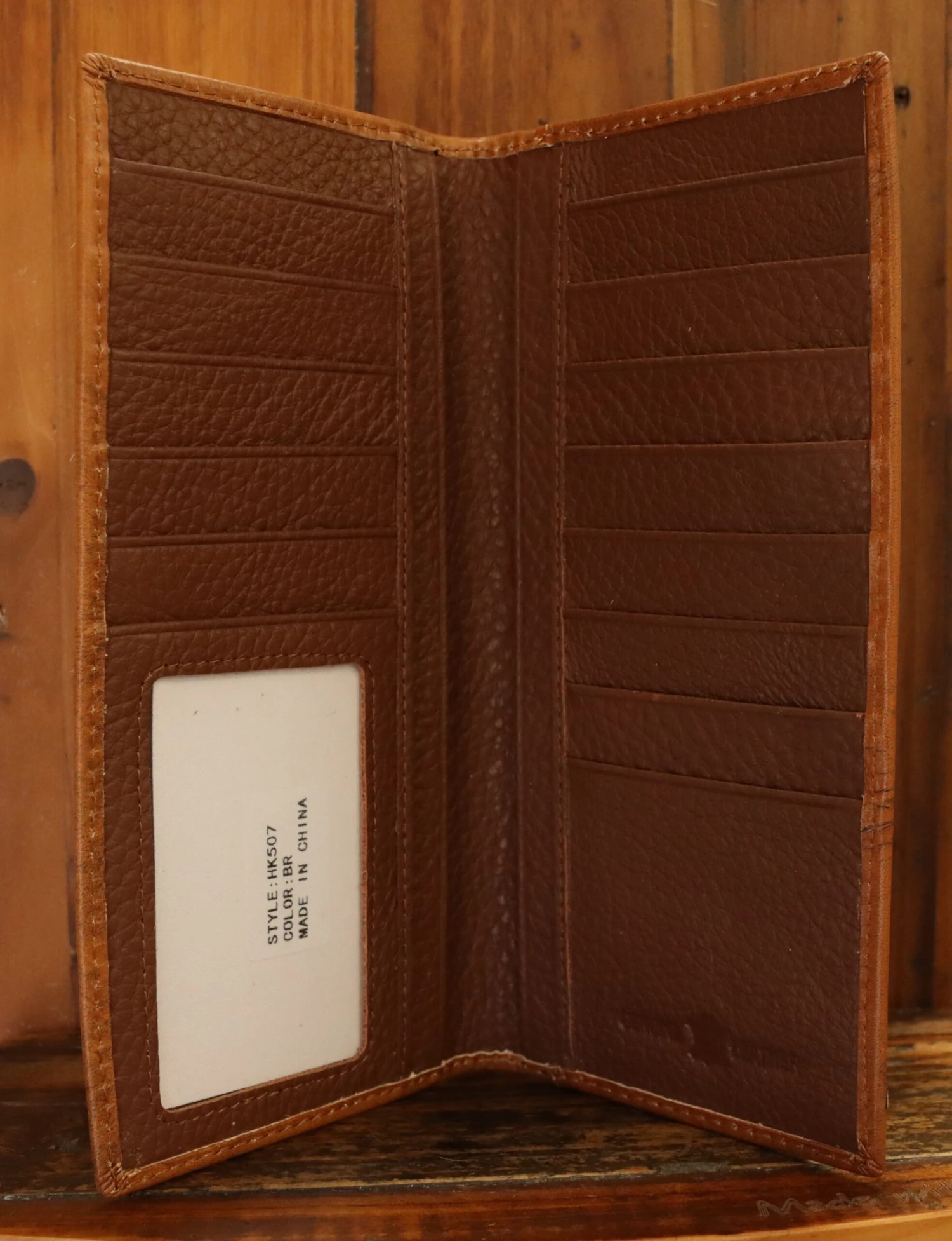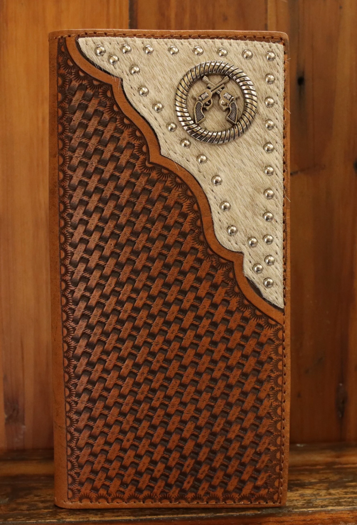 Top Notch Accessories HK507BR Hair On Basket Weave Tall Brown Gun Conch Wallet