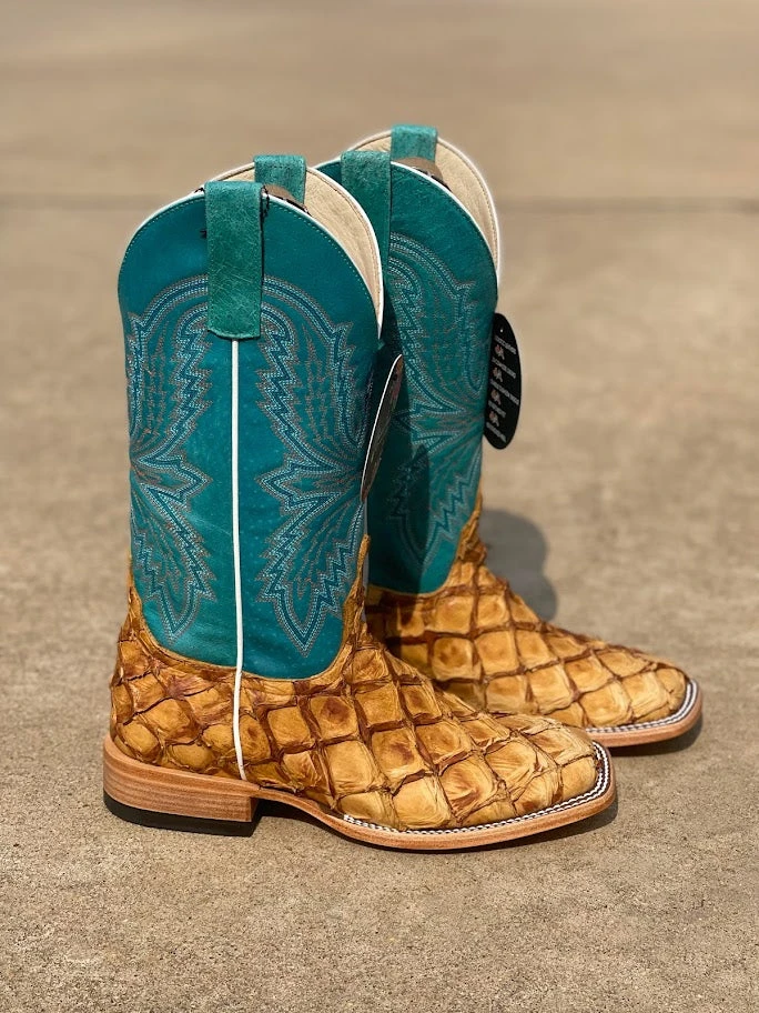 Women’s Macie Bean Top Hand M2008 13″ Antique Bass with Turquoise Top Square Toe Boot