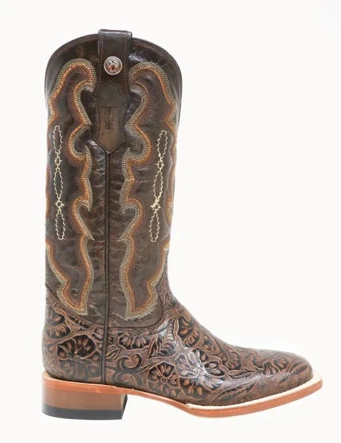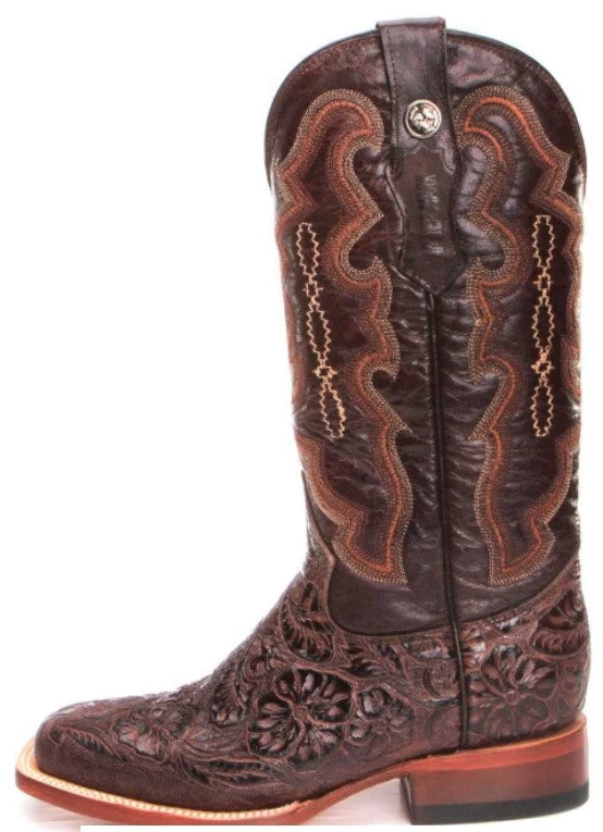Women’s Tanner Mark TML201759 Brown Hand Tooled Wide Square Toe Boot