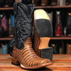 Women’s Tanner Mark TML207098 Brown Hand Tooled Print Square Toe Boot