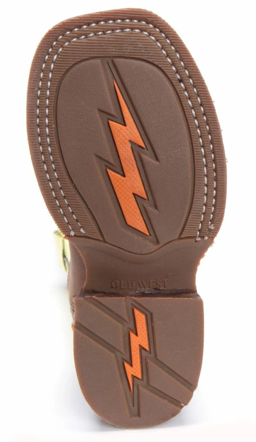 Youth Old West BSY1832 Brown Caiman Print Wide Square Toe