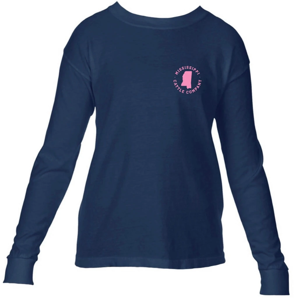 Youth YTHMSCATTLELS-5 Mississippi Cattle Company Navy Long Sleeve Comfort Color T-Shirt