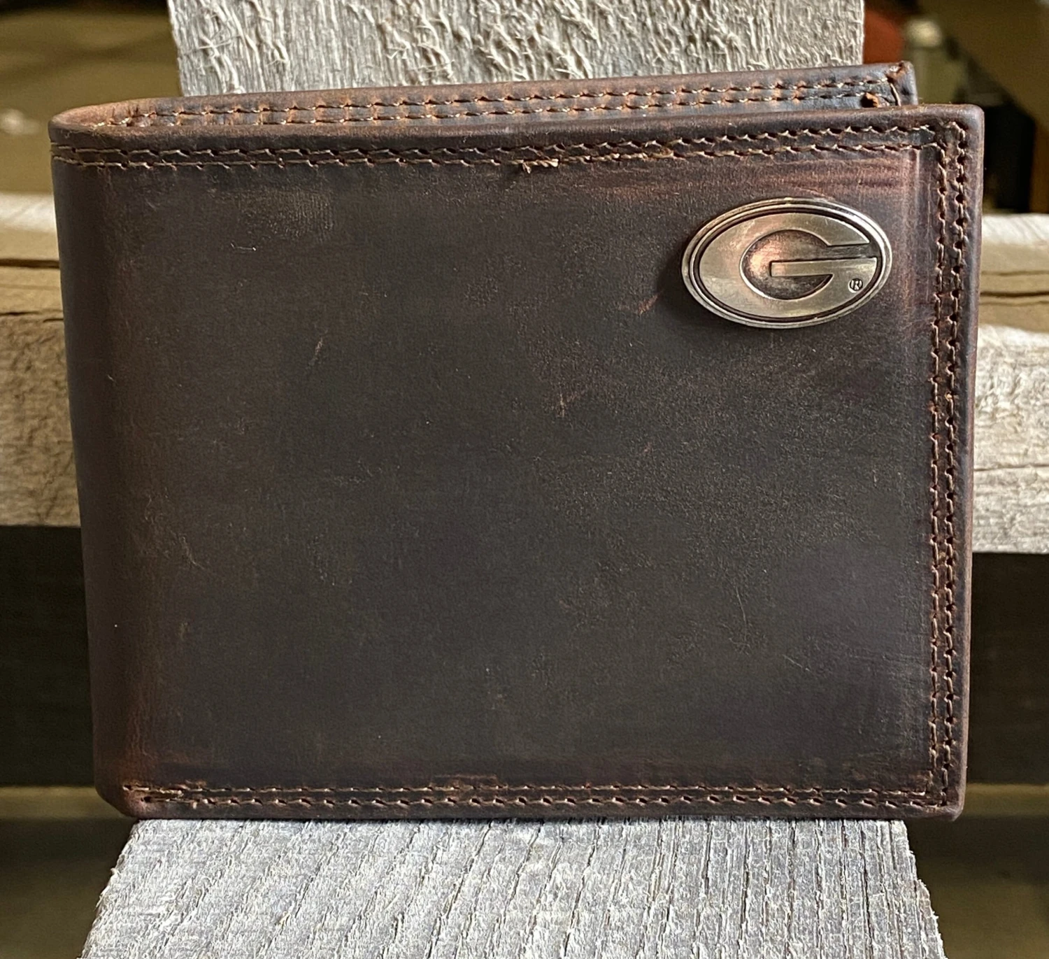 Zep-Pro IWT1CRZH-UGA University of Georgia Bulldogs Brown “Crazy Horse” Leather Bi-fold Wallet